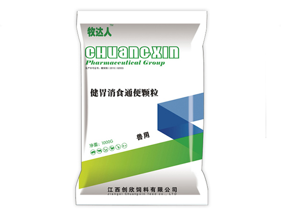 【商品名称】健胃消食通便颗粒 【通用名称】4%大猪复合预混合饲料 【汉语拼音】Jianweixiaoshi Tongbang keli 【主要成分】山楂、麦芽、陈皮、太子参、乌梅、六神曲。辅料为葡萄糖。 【性 状】本品为黄褐色至棕褐色的颗粒或粉末,味酸,甜。 【产品特色】 1、纯中药,高含量,安全高效,绿色环保。 2、超临界萃取和高精提纯制粒,吸收更快,生物利用率更高。 3、疫苗增效与免疫补位,提高生产性能与生产效益。 4、开胃生血,解毒排毒,强壮体质。 5、本品为保健佳品,可长期使用。 【功能主治】健胃理气,宽中除胀,增进食欲,强壮体质,缩短生长周期。 1、主治食欲减退,消化不良,肚腹胀满,如多种原因引起的胃肠机能紊乱,从而引发的粪稀,粪中有未消化的饲料,饲料报酬低,采食量下降。 2、主治各种家畜病后不吃,体温正常不吃,无症不吃,拒吃精料,只喝水不吃料或只吃青料,便秘不通,营养不良性老僵猪病症。疾病期蛋鸡产蛋率下降,伤食积滞,腹胀,腹泻或便秘,生长迟缓,发育不良等症。 【用法用量】 猪、牛、羊、貂、狐、兔,①混饮:本品1000g兑水1吨,让其自由饮用;②混饲:本品1000g拌料0.5吨。③直接口服,每公斤体重0.2克,分早晚各一次灌服或拌料喂服。连用3~5天。 禽(鸡、鸭、鹅、鸽),①混饮:本品1000g兑水1.5吨,让其自由饮用,每天1~2次;②混饲:本品1000g拌料1吨。连用3~5天。 保健用量:按上述用量减半即可。 【包装规格】1000g(500g×2包)/袋 【贮 存】密闭,防潮。