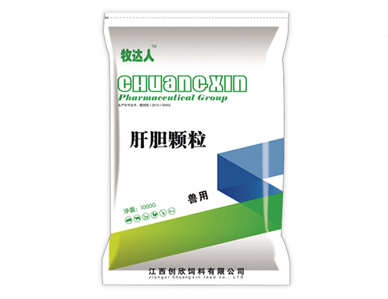 【商品名称】肝胆颗粒 【通用名称】0.1%猪多种维生素预混合饲料 【汉语拼音】Gandan keli 【主要成分】板蓝根、茵陈、甘草、黄芪等。 【性 状】本品为黄褐色至棕褐色的颗粒或粉末。 【产品特点】 1.科学组方。以上方药配伍具有清热解毒、清热燥湿、利水消肿、破瘀散结的功效,诸药科学组方起到协同增效,快速缓解肝脏郁结、肿大、坏死等症。 2.现代药理学研究表明,本方提取物富含甘草酸、甘草甜素、茵陈素、黄芪苷、黄芪多糖 等成分,能使转氨酶显著降低,对各种原因导致的肝细胞肿胀、气球样变性、脂肪变性 和坏死症状明显减轻。对各种原因引起的肝损伤都有极好的保护作用。 3.免疫增强作用。本方富含的黄芪皂苷、黄芪多糖、甘草酸等能显著诱导机体α-干扰素和γ-干扰素达十几倍,并对NK吞噬细胞活性具有极显著的增强作用。 4.抗炎、抗过敏、抗变态反应作用。本品可用于肝、胆、肾间质性炎症的治疗,能有效预 防由各种应激因素导致的机体变态反应。 【功能与主治】清热解毒、清热燥湿、清肝利胆。用于各种原因导致的肝肿大、变性、坏死等肝脏病变,提高机体免疫力和抗病能力。主治对下病症。 1.用于由盲肠肝炎、弧菌性肝炎、包涵体肝炎、鸭病毒性肝炎、番鸭花肝病等疾病以及大肠杆菌、沙门氏菌、禽霍乱、脂肪肝出血综合症等病原菌引起的肝损伤。 2.用于霉菌毒素慢性中毒、长期使用药物导致的慢性中毒、蛋白过剩等各种原因引起的肝脏肿大、变性、坏死等肝脏损伤。 3.定期应用本品可有效防止肝肾损伤,提高机体免疫力和抗病能力。 【用法用量】 治疗:家畜(猪、牛、羊、貂、狐、兔),拌料:本品500克拌料500公斤,连用3~5天。混饮:本品500克兑水1000公斤,让其自由饮用。禽(鸡、鸭、鹅、鸽),混饮:本品500克兑水1500~2000公斤,让其自由饮用,每天1~2次;拌料:本品500克拌料500~1000公斤,连用3~5天。 预防保健:按治疗量减半使用,连用5~7天。长期使用效果更佳。 【包装规格】1000g(500g×2包)/袋 【贮 存】密闭,防潮。