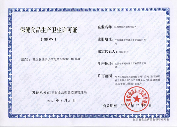 Health food production hygiene license