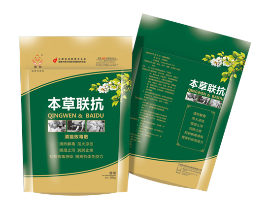[veterinary drug name] Generic name: clear and disinfected Chinese pinyin: Qingwenbaidu San [main ingredients] yellow, yellow, gardenia, forsythia, liquorice, etc. 【 traits 】 this product is a gray-yellow powder; Micro gas incense. 【 function main cure 】 clear heat detoxification, diarrhea, cold blood, dryness of the diarrhea, moistening lungs to stop coughing, slow pain, antibacterial anti-inflammatory, inhibit virus infection, improve body immunity. Main control of livestock and poultry: 1, animal viral disease caused by complicated by adapting just-in-time inventory, pigs, severe cold, sepsis, disease, lung disease, panting, erysipelas, viral hepatitis, claudication god caused by high fever faint, depression, loss of appetite, difficulty breathing and immunosuppressive disease. 2. Activate the immune system of the female animal body, promote the development and growth of the immune organs, improve the anti-viral ability of the body, improve the postpartum failure of the sow, and avoid food, constipation, and puerperal fever. [usage] Treatment dosage: 500g for every 1 ton of feed, 5 days for continuous use; To reduce the amount of prevention by half or according to the veterinarian's advice. Dosage of mixed drink: take 500g of this product to be sealed and soak in boiling water for 2 hours. To reduce the amount of prevention by half or according to the veterinarian's advice. Note: 1. This product is an effective component of Chinese medicine, with high content and obvious curative effect. 2. The product is the preferred product of large-scale farming and export breeding enterprises. 3. If you need to mix and drink, use the water for 1-2 hours before use, and drink it with water. There is no provision for suspension. Packaging: 500g/bag Storage: sealed, damp proof.
