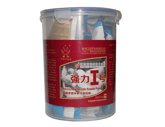 Name of veterinary drug: soluble powder of polyxicycline hydrochloride Veterinary prescription English name: Doxycycline Hyclate Soluble Powder Pinyin: Yansuan Duoxihuansu Kerongxingfen 【 main ingredient 】 hydrochloric acid doxycycline 【 traits 】 this product is light yellow or yellow crystalline powder. [pharmacological action] tetracycline antibiotics. Doxycycline through reversible with receptors on the bacterial ribosome 30 s subunit, interference tRNA and mRNA ribosome complex formation, prevent the peptide chain extension and inhibition of protein synthesis, so that the growth of bacteria quickly suppressed. Doxycycline has inhibitory effect on gram-positive and negative bacteria. The bacteria were resistant to doxycycline and doxycycline. The absorption of internal clothing is very rapid, the food is less affected by the food, the bioavailability is high, the tissue is strong, the distribution is wide, the effective blood drug concentration is long. The protein binding rate in pigs was 93%. [indications] used to treat e. coli, salmonella, salmonella, pasteuritis and respiratory diseases caused by mycoplasma, such as pigs, chicken gram-positive bacteria and negative bacteria. [usage dosage] with the multi-western cycloelement meter. Mixed drink: every 1L of water, pig 25 ~ 50mg, chicken 300mg. For 3-5 days. [adverse reactions] long-term application can cause double infection and liver damage. 【 caution 】 avoid the same amount of calcium with high calcium content. [the drug period] 28. Egg-laying season is banned. [specification] 10% [packaging] 100g/bag. Storage: sealed, shaded and dry. [approval number] veterinary drug word (2012) 140096011 [executive standard] the first volume of the national standard of veterinary medicine [license number] (2011) veterinary drug production certificate 14009
