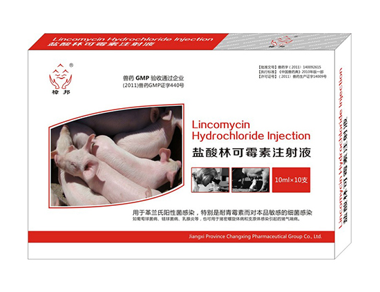 【 veterinary medicine name 】 common name: lincomycin hydrochloride injection liquid veterinary medicine prescription English name: Lincomycin Hydrochloride Injection Pinyin: Yansuan Linkemeisu Zhusheye [main ingredients] lincomycin hydrochloride 【 traits 】 this product is colorless or almost colorless transparent liquid. [pharmacological action] pharmacodynamics Clindamycin belongs to forests amine in antibacterial, antibacterial agent, sensitive bacteria including staphylococcus aureus (including resistance to penicillin strain), streptococcus, pneumococcus, bacillus anthracis, swine erysipelas bacteria, some mycoplasma mycoplasma pneumoniae (pigs, pig nose mycoplasma, joint fluid mycoplasma), leptospira and anaerobic bacteria (flown by bacillus clostridium, tetanus, gas capsule clostridium and most actinomycetes, etc.). The main effect of the bacterial ribosome in the 50S is that the inhibition of protein synthesis by inhibiting the extension of the peptide chain plays an antimicrobial role. After intramuscular injection, the intramuscular injection was rapid, and the intramuscular injection of 11mg/kg was injected, and the peak concentration was 6.25 g/ml. The binding rate of plasma protein was 57% ~ 72%. In the body, the distribution is widely distributed, and its apparent distribution volume pig is 2.8l/kg. In most tissues, chest water, ascites, and joint fluid can reach an effective level, especially in bone tissue, but not through the blood-brain barrier and into cerebrospinal fluid. The milk can be entered through the placenta and distribution. Mainly in the liver metabolism, through bile and fecal excretion, a small amount of urine excretion. [drug interactions] 1. There is a synergistic effect on staphylococcus, streptococcus and other gram-positive bacteria when combined with gentamycin. 2. With aminoglycoside and polypeptide antibiotics, may enhance the nerve - muscle joint block effect, and share, erythromycin have antagonism effect, because of the function parts are the same, and the affinity of erythromycin on bacterial ribosomal 50 s subunits than this product. 3. It should not be used to restrain the intestinal peristalsis and the anti-laxative medicine containing white clay. 4. There are no compatibility with kanamycin and neonamycin. 【 indications 】 used for gram positive bacteria infection, especially the resistance to penicillin and stabler sensitive bacterial infections, such as staphylococcus, streptococcus disease, mastitis, also can be used for pig treponema disease and mycoplasma infection of swine asthma. Intramuscular injection: one dose per 1Kg weight, 0.1ml of pig, 1 time a day; Dog, cat 0.1 ml. Two times a day for 3-5 days. [adverse reactions] have neuromuscular blocking effects. Intramuscular injection may cause an overdose of diarrhea or laxation. Although rarely seen, the presence of necessary measures should be taken to prevent dehydration. Pig 2 days. [specification] 10ml: 1g Packaging: 10ml x 10 / box Storage: sealed. [approval number] veterinary drug word (2011) 140092615 [executive standard] the 2010 edition of the Chinese animal pharmacopoeia [license number] (2011) veterinary drug production certificate 14009
