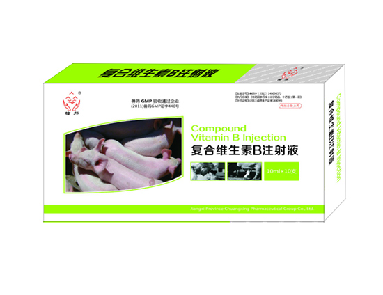 Generic name: compound vitamin B injection Compound Vitamin B Injection Chinese pinyin: Fuhe Weishengsu B Zhusheye [main ingredients] VB1, VB7, VB6, nicotinamide. 【 traits 】 this product is a bright or almost transparent solution of yellow with green fluorescence. [pharmacological action] vitamin. Vitamin B1 has the function of maintaining normal peristalsis and gastric juice secretion and the absorption and fermentation of digestive tract fat. Vitamin B2 has the necessary factors to promote biological oxidation and normal growth of animals. Vitamin B6 has a biological activity and is an auxiliary factor of phosphorylase in glycogen metabolism. [aph] is used to prevent multiple neuritis caused by B vitamins, digestive disorders, mandiosis, stomatitis, etc. Main clinical use: 1. Ruminants (cattle, sheep) proventriculus delays, rumen JiShi and expansion, and gastrointestinal tract venting, stomach, intestinal constipation, omasum congestion and bladder urine deposition, abdominal pain, loss of appetite, or waste, ruminant unable or stop, terminate the swallowing disorder. The function of improving and enhancing gastrointestinal digestive function promotes gastrointestinal peristalsis and secretion, stimulates and increases appetite, helps digestion, promotes gastric emptying, and quickly regurgitates rumination. There are no rumination and uterine flaccid, the placental and the uterine festering. 2. Pig's stomach, diet, ventilation, etc. [usage dosage] intramuscular injection: one dose (per head) horse, cattle 10-20ml, pig, sheep 2-6ml, dog, cat, rabbit 0.5~ 1ml. Intravenous injection: one dose (per head), cattle 5-10ml, pigs, sheep 1-3ml, dogs, cats, rabbits 0.25~ 0.5ml. Internal clothing: a quantity (per head) horse, cattle 30-50ml, pig, sheep 7-10ml, dog, cat, rabbit 2~ 3ml. There is no regulation. [note] the intravenous injection should be slow. There are reports of allergic reactions in vitamin B, and should be measured when dosage is over 50mg. No, no. Specification: 10ml 10mlx10 / box Storage: shade, sealed and preserved. [approval number] veterinary drug (2012) 140094572 [executive standard] the first volume of veterinary drug national standard (chemicals, Chinese medicine volume) [license number] (2011) veterinary drug production certificate 14009