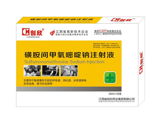 [main components] sulfadiazine sodium 【 traits 】 this product is colorless to microyellow transparent liquid. [indications] are mainly used for respiratory, digestive tract, urinary tract infection, coccidiosis and toxoplasmosis. Intravenous infusion: one dose, 1 kg of weight, and 0.5ml of livestock. 1 ~ 2 times a day, 2 ~ 3 days. [adverse reactions] 1. Sulfonamide or its metabolites can produce precipitation in the urine, which is more likely to produce crystallization during high dosage and long term administration, resulting in the blockage of crystalline urine, hematuria or renal tubules. 2. Intravenous injection can cause temporary paralysis. 3. Sulfonamide injection is a strong alkaline solution with strong irritant to the tissues. 1. This product can be crystallized by acid, so it should not be diluted with 5% glucose solution. 2. Long-term or large dosage of application is easy to cause crystallization of urine, and it should be used for the application of sodium bicarbonate and drinking large amounts of water. 3. When allergic reactions or other serious adverse reactions occur, stop the medicine immediately and treat the drug with symptomatic treatment. [take the medicine period] cattle, sheep, pig 28 days (tentative). [specification] 10ml: 1g Packaging: 10ml x 10 / box Storage: shade, sealed and preserved.