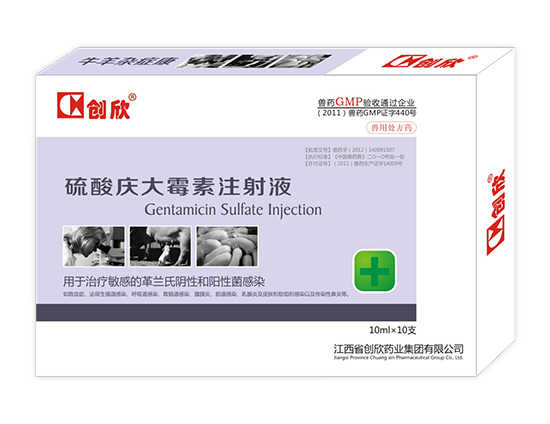 Commercial name: cattle and sheep omniform kang Chinese pinyin: LiusuanQingdameisu Zhusheye English name: Gentamycin Sulfate injection 【 main ingredients 】 sulfuric acid gentamycin, saladin, hydrochloride and sulfadiazine. 【 traits 】 this product is a colorless or yellowish transparent liquid. [pharmacological action] this product has strong effect on gram-positive, negative bacteria and mycoplasma. Meanwhile, it has the effect of the combination of strong annealing, relieving heat and relieving pain, promoting the secretion of liver bile, digestion, and appetite recovery. There are powerful inhibitory effects on streptococcus, pneumococcal, meningococcal, staphylococcus, dysentery bacillus, and brucella. After intramuscular injection, rapid and complete absorption of blood drug peaks is produced in 0.5 ~ 1h, and is widely distributed in ascites, chest water, bronchial secretions, bile, pericardial fluid, joint fluid, and pus. Its mechanism is the antagonist bacteria double strands of DNA gyrase, thereby blocking the bacterial DNA replication, at the same time effective damaging virus RNA and protein synthesis, and a rapid sterilization and quickly remove toxins in the body of remarkable effect. [indication] 1. The breathing difficulties caused by pneumonia, nasal bronchitis, keratitis, and infectious pleural pneumonia are caused by cattle (sheep). The fever, heat, heat, streptococcus disease and its associated high fever, lack of appetite, poor spirit, dry nose, and urine, yellow and red. 3. Cattle (sheep) enteritis, lamb dysentery, amniaemia, diarrhea, diarrhea, diarrhea, abdominal pain, constipation. 4. Genital tract infection caused by mastitis and endometritis. 5. Cattle (sheep) caused by birth, labor, transport heat and other factors caused by the decline of the body resistance, mixed infection. 6. Blue tongue disease, local trauma of cattle (sheep), ulcers, blisters and redness. 7. The pig has a high fever, loss of appetite, difficulty in breathing, diarrhea of enteritis, dysentery and mastitis. Intramuscular intramuscular injection, intravenous injection of 1kg of cattle, 0.05ml-0.1ml of pigs, horses and mules, 0.1ml- 0.2ml, breast perfusion: 0.05ml per 1kg of body weight (0.05 ml) was diluted and injected with saline. [adverse reactions] young animals should not be overused. [precautions] pregnant animals are available, the drug is strong and not suitable for mixing with other drugs. This product has been used for two consecutive times. If it has not been effective, please make a separate diagnosis. This product at low temperature such as precipitation, with more than 80 ℃ hot water for 15 minutes to clarify after use, do not affect curative effect. 28 days before the kill. Packaging specification 10ml: gentamycin sulfate 0.4g Storage: kept in a cool, dry and ventilated place.